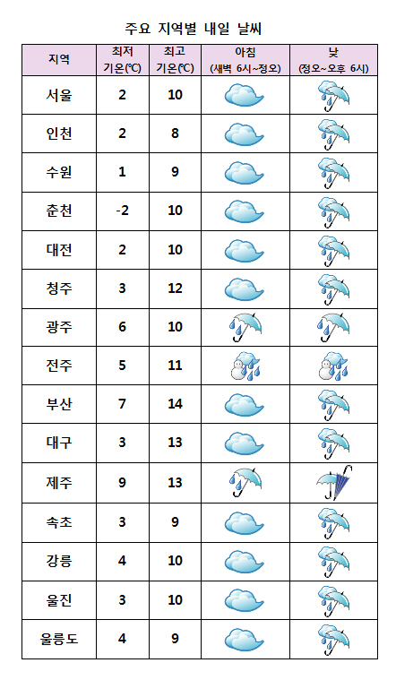 ÀÌ¾î ¡°±× ¹ÛÀÇ °æ»óµµ¿Í ÁߺÎÁö¹æÀº ¿ÀÈĺÎÅÍ ºñ ¶Ç´Â ´«ÀÌ ¿À°Ú°í, Á¦ÁÖµµ´Â »õº®ºÎÅÍ ´ÊÀº ¿ÀÈÄ »çÀÌ¿¡ ºñ°¡ ¿À°Ú´Ù¡±¸ç ¡°ºñ ¶Ç´Â ´«ÀÌ ¿À´Â Áö¿ª¿¡¼´Â °¡½Ã°Å¸®°¡ ªÀº °÷ÀÌ ÀÖ°Ú´Ù¡±°í ÀüÇß´Ù.