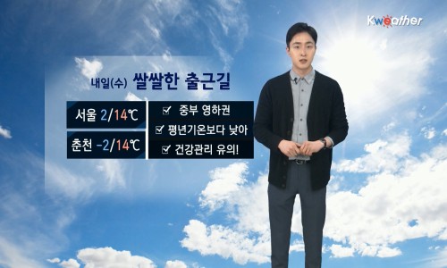 ÇöÀç Àü±¹ÀÌ ÆÄ¶õÇϴðú ÇÔ²² Æ÷±ÙÇÑ ³¯¾¾¸¦ º¸À̰í ÀÖÁö¸¸, ¿À´Ã ¹ãºÎÅÍ´Â ±â¿ÂÀÌ Á¡Á¡ ¶³¾îÁö¸é¼ ³»ÀÏ(3ÀÏ‧¼ö) ¾ÆÄ§ Ãâ±Ù±æ¿¡´Â ½Ò½ÒÇÑ ³¯¾¾°¡ À̾îÁö°Ú´Ù. ¼¿ïÀÇ ¾ÆÄ§±â¿ÂÀº 2µµ·Î ½ÃÀÛÇØ Çѳ·¿¡´Â 14µµ±îÁö ¿À¸£°Ú°í, ÃáõÀÇ ¾ÆÄ§±â¿ÂÀº -2µµ±îÁö ¶³¾îÁö¸ç ÀϺΠÁߺÎÁö¹æÀ¸·Î´Â ¿µÇϱÇÀ» º¸À̰ڴÙ. ³»ÀϱîÁö´Â Æò³âº¸´Ù ³·Àº ±â¿ÂÀ» º¸ÀÌ¸é¼ ´Ù¼Ò Ãä°ÚÀ¸´Ï, ȯÀý±âÀÎ ¸¸Å ¿ÊÂ÷¸²¿¡´Â ´õ¿í ½Å°æ ¾²±â ¹Ù¶õ´Ù. ¹Î°£±â»ó±â¾÷ ÄÉÀÌ¿þ´õ´Â ¡°³»ÀÏ(3ÀÏ‧¼ö)Àº Áß±¹ »êµÕ¹Ýµµ ºÎ±Ù¿¡¼ ³²µ¿ÁøÇÏ´Â °í±â¾ÐÀÇ ¿µÇâÀ» ¹Þ°Ú´Ù¡±°í ÀüÇß´Ù. ÄÉÀÌ¿þ´õ ¿¹º¸ °ü°èÀÚ´Â ¡°ÇöÀç Àü±¹ÀÌ ´ëü·Î ¸¼Àº ³¯¾¾¸¦ º¸À̰í ÀÖ´Ù¡±°í ¸»Çß´Ù. * (ÃÊ)¹Ì¼¼¸ÕÁö ¿¹º¸ - ȯ°æºÎ ±âÁØ : ¼ÂÊÁö¹æ ¿ÀÀü ¡®º¸Å롯, ¿ÀÈÄ ¡®ÇѶ§ ³ª»Ý¡¯ / µ¿ÂÊÁö¹æ ¡®º¸Å롯 - WHO ±âÁØ : ¼ÂÊÁö¹æ ¿ÀÀü ¡®ÇѶ§ ³ª»Ý¡¯, ¿ÀÈÄ ¡®³ª»Ý¡¯ / µ¿ÂÊÁö¹æ ¡®ÇѶ§ ³ª»Ý¡¯ ¾ÆÄ§ ÃÖÀú±â¿ÂÀº ¼¿ï‧ûÁÖ‧±¤ÁÖ‧´ë±¸ 2¡É, ÀÎõ 3¡É, ¼ö¿ø‧´ëÀü‧ÀüÁÖ 0¡É, Ãáõ -2¡É, ºÎ»ê 5¡É, Á¦ÁÖ 8¡É, ¼ÓÃÊ‧¿ïÁø 3¡É, °¸ª‧¿ï¸ªµµ 4¡É, ¹é·Éµµ 5¡É¸¦ º¸À̰ڴÙ. ³· ÃÖ°í±â¿ÂÀº ¼¿ï‧Ãáõ‧ÀüÁÖ 14¡É, ÀÎõ 11¡É, ¼ö¿ø 13¡É, ´ëÀü‧ûÁÖ‧±¤ÁÖ‧ºÎ»ê 15¡É, Á¦ÁÖ‧¼ÓÃÊ‧¿ïÁø 14¡É, °¸ª 15¡É, ¿ï¸ªµµ 11¡É, ¹é·Éµµ 9¡É°¡ ¿¹»óµÈ´Ù. ³²ÇØ¿Í ¼ÇØ»óÀ¸·Î´Â ¸¼°Ú°í, µ¿ÇØ»óÀ¸·Î´Â ºñ ¼Ò½ÄÀÌ ÀÖ´Ù. ¹Ù´ÙÀÇ ¹°°áÀº µ¿ÇØ»óÀ¸·Î ÃÖ°í 2.5m·Î ¾à°£ ³ô°Ô ÀϰÚÀ¸´Ï, Ç×ÇØ³ª Á¶¾÷ÇϽô ¼±¹ÚÀº Âü°íÇϱ⠹ٶõ´Ù. ±Ý¿äÀÏ(5ÀÏ)ºÎÅÍ´Â ±â¿ÂÀÌ Á¡Á¡ ¿À¸£¸é¼ ÀÌÁ¦ ÃßÀ§´Â ´ú Çϰڰí, À̹ø ÁÖ¿¡´Â ºñ ¼Ò½ÄÀÌ ÀÖ´Ù. ±Ý¿äÀÏ(5ÀÏ)¿¡´Â °¿øµµ¿¡ ºñ ¼Ò½ÄÀÌ ÀÖ°í, ÀÏ¿äÀÏ(7ÀÏ)¿¡´Â Àü±¹ÀÌ È帰 °¡¿îµ¥ ÁߺÎÁö¹æ¿¡ ºñ°¡ ³»¸± °ÍÀ¸·Î Àü¸ÁµÈ´Ù. ¿ÀÁÖÈ£ ¿ÂÄÉÀÌ¿þ´õ ±â»óij½ºÅÍ osw410@naver.com
