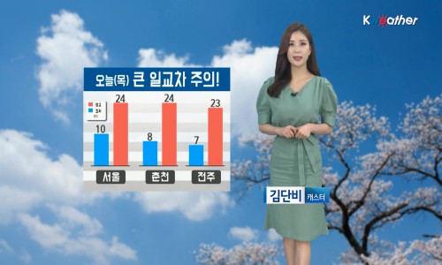 ¿À´Ã(2ÀÏ‧¸ñ)Àº Àü±¹ÀÌ ´ëü·Î ¸¼°í Æ÷±ÙÇϰÚÁö¸¸, ³»·úÀ» Áß½ÉÀ¸·Î Àϱ³Â÷°¡ ¸Å¿ì Å©°Ô ¹ú¾îÁö°Ú´Ù. ÇÑÆí, ÃæÃ»µµ¿Í Àü¶óµµ, Á¦ÁÖµµ¸¦ Áß½ÉÀ¸·Î´Â ¹Ì¼¼¸ÕÁö ³óµµ°¡ £°Ô ³ªÅ¸³ª°Ú´Ù. ¹Î°£±â»ó±â¾÷ ÄÉÀÌ¿þ´õ´Â ¡°¿À´ÃÀº Áß±¹ ÁߺÎÁö¹æ¿¡¼ µ¿ÁøÇÏ´Â °í±â¾ÐÀÇ ¿µÇâÀ» ¹Þ¾Æ Àü±¹ÀÌ ´ëü·Î ¸¼°Ú´Ù¡±°í ÀüÇß´Ù. ÄÉÀÌ¿þ´õ ¿¹º¸ °ü°èÀÚ´Â ¡°´çºÐ°£ °í±â¾ÐÀÇ ¿µÇâ±Ç¿¡¼ ¸¼Àº ³¯¾¾°¡ À̾îÁö¸é¼ ´ë±â°¡ Â÷Â÷ °ÇÁ¶ÇØÁö°Ú´Ù¡±¸ç »êºÒ µî °¢Á¾ ÈÀç ¿¹¹æ¿¡ °¢º°ÇÑ À¯ÀǸ¦ ´çºÎÇß´Ù. * (ÃÊ)¹Ì¼¼¸ÕÁö ¿¹º¸ - ȯ°æºÎ ±âÁØ : Á¦ÁÖ ¿ÀÀü ¡®¸Å¿ì ³ª»Ý¡¯, ¿ÀÈÄ ¡®ÇѶ§ ³ª»Ý¡¯ / ÃæÃ», Àü¶ó ¿ÀÀü ¡®³ª»Ý¡¯, ¿ÀÈÄ ¡®ÇѶ§ ³ª»Ý¡¯ / ±× ¹ÛÀÇ Àü±¹ ¡®º¸Å롯 - WHO ±âÁØ : ÃæÃ», Àü¶ó, Á¦ÁÖ ¿ÀÀü ¡®¸Å¿ì ³ª»Ý¡¯, ¿ÀÈÄ ¡®³ª»Ý¡¯ / ±× ¹ÛÀÇ Àü±¹ ¡®ÇѶ§ ³ª»Ý¡¯ ³· ÃÖ°í ±â¿ÂÀº ¼¿ï‧¼ö¿ø‧Ãáõ‧´ëÀü‧ûÁÖ 24¡É, ±¤ÁÖ 22¡É, ÀüÁÖ‧°¸ª 23¡É, ÀÎõ‧Á¦ÁÖ 20¡É, ¼ÓÃÊ 25¡É°¡ ¿¹»óµÈ´Ù. ¹Ù´ÙÀÇ ¹°°áÀº µ¿ÇØ»óÀ¸·Î ÃÖ°í 2.5m±îÁö ¾à°£ ³ô°Ô Àϰڰí, ±× ¹ÛÀÇ ÇØ»óÀº ºñ±³Àû ÀÜÀÜÇÏ°Ô ÀϰڴÙ. ´çºÐ°£ Ưº°ÇÑ ºñ ¿¹º¸ ¾øÀÌ ¸¼°í Æ÷±ÙÇÑ ³¯µéÀÌ °è¼ÓµÉ Àü¸ÁÀÌ´Ù.