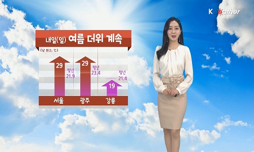 ÀÏ¿äÀÏÀÎ ³»ÀÏ(12ÀÏ¡¤ÀÏ)µµ ¿©¸§´õÀ§°¡ À̾îÁö°Ú°í, °ÇÑ Àڿܼ±¿¡ ¿ÀÁ¸ÀÇ ³óµµµµ £À» °ÍÀ¸·Î º¸¿© °Ç°°ü¸®¿¡ ÁÖÀǰ¡ ÇÊ¿äÇÏ´Ù. ¹Î°£±â»ó±â¾÷ ÄÉÀÌ¿þ´õ¿¡ µû¸£¸é ³»ÀÏ(12ÀÏ¡¤ÀÏ)Àº µ¿ÇØ»ó¿¡ À§Ä¡ÇÑ °í±â¾ÐÀÇ ¿µÇâÀ» ¹Þ¾Æ Àü±¹ÀÌ ´ëü·Î ¸¼°Ú´Ù. ´Ù¸¸, °æ±â µ¿ºÎ¿Í °¿ø¿µ¼, ÃæºÏ°ú °æºÏºÏºÎ³»·úÀº ´ë±âºÒ¾ÈÁ¤À¸·Î ÀÎÇØ ¼Ò³ª±â°¡ Áö³ª´Â °÷ÀÌ ÀÖ°Ú´Ù. ¾ÆÄ§ ÃÖÀú±â¿Â 8~16¡É·Î Æò³â°ú ºñ½ÁÇϰųª Á¶±Ý ³ô°Ú°í, ³· ÃÖ°í±â¿Â 18~30¡É·Î ¿¹³â À̸¾¶§º¸´Ù 2~7¡É°¡·® ³ô¾Æ ´Ù¼Ò ´þ°Ú´Ù. ¹Ì¼¼¸ÕÁö ³óµµ´Â ¿ÀÀü¿¡ ¼ÂÊÀ» Áß½ÉÀ¸·Î '³ª»Ý' ´Ü°è¸¦ º¸ÀÌ´Ù°¡ ¿ÀÈĺÎÅÍ´Â Àü±¹ÀûÀ¸·Î 'º¸Åë' ´Ü°è·Î °ø±â »óÅ´ ¾çÈ£ÇÒ °ÍÀ¸·Î º¸ÀδÙ. ´Ù¸¸, ´ë±â°¡ °ÇÁ¶ÇÑ °¡¿îµ¥ Àڿܼ±ÀÌ ³ô°Ô Ä¡¼Ú°Ú°í, ¿ÀÁ¸ÀÇ ³óµµµµ £À» °ÍÀ¸·Î º¸ÀδÙ. ºµÀÌ °ÇÑ ¿ÀÈÄ ½Ã°£¿¡´Â ¾ß¿ÜȰµ¿À» ÇÇÇÏ´Â °Ô ÁÁ°Ú´Ù. ¹Ù´ÙÀÇ ¹°°áÀº 0.5~1.5m·Î ÀÜÀÜÇÏ°Ô ÀϰڴÙ. ´çºÐ°£ ±¸¸§ ¸¹°Ú°í, ÁÖ ÃÊ¹Ý Á¦ÁÖµµ¿¡ ºñ°¡ ³»¸± °ÍÀ¸·Î º¸ÀδÙ. ¶Ç Æò³â±â¿ÂÀ» ¿ôµµ´Â ´õ¿î ³¯¾¾°¡ °è¼ÓµÉ Àü¸ÁÀÌ´Ù.
