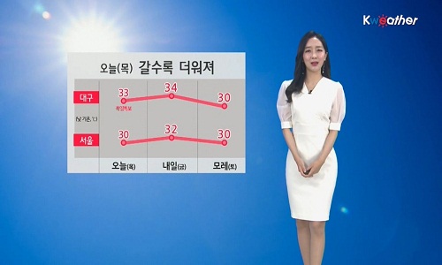 ¸ñ¿äÀÏÀÎ ¿À´Ã(23ÀÏ¡¤¸ñ)Àº ³· µ¿¾È 30¡É ¾ÈÆÆÀÇ ¿©¸§´õÀ§¸¦ º¸À̰ڰí, ´ë±âÁúµµ ³ª»Ü °ÍÀ¸·Î ¿¹»óµÈ´Ù. ¹Î°£±â»ó±â¾÷ ÄÉÀÌ¿þ´õ¿¡ µû¸£¸é ¿À´Ã(23ÀÏ¡¤¸ñ)Àº ³²ÇØ»ó¿¡ À§Ä¡ÇÑ °í±â¾ÐÀÇ ¿µÇâÀ» ¹Þ¾Æ Àü±¹ÀÌ ´ëü·Î ¸¼°Ú´Ù. ¾ÆÄ§ ÃÖÀú±â¿Â 11~20¡É·Î ½Ò½ÒÇϰųª ¼´ÃÇÏ°Ô Ãâ¹ßÇϰڰí, ³· ÃÖ°í±â¿ÂÀº 23~32¡É±îÁö ¿Ã¶ó ¿©¸§´õÀ§¸¦ º¸À̰ڴÙ. ÀÌ¿¡ µû¶ó °æ»ó³»·ú¿¡´Â Æø¿°Æ¯º¸±îÁö ³»·ÁÁø »óÅ´Ù. ´õÀ§¿¡ ÁöÄ¡Áö ¾Êµµ·Ï °Ç°°ü¸®¿¡ À¯ÀÇÇØ¾ß°Ú´Ù. ÇÑÆí, ´ë±âÁúµµ ÁÁÁö ¸øÇÏ´Ù. ´ë±â°¡ Á¤Ã¼µÈ °¡¿îµ¥ ±¹³»/¿Ü¿¡¼ ¹ß»ýÇÑ ¿À¿°¹°ÁúÀÌ ½×¿©°¡±â ¶§¹®ÀÌ´Ù. Àü±¹ÀÇ ¸ÕÁö³óµµ '³ª»Ý' ´Ü°è°¡ ¿¹»óµÈ´Ù. ¿©±â¿¡ Àڿܼ±°ú ¿ÀÁ¸ÀÇ ³óµµµµ °ÇÏ°Ô ³ªÅ¸³ª°Ú´Ù. È£Èí±â Áúȯ¿¡ °É¸®Áö ¾Êµµ·Ï Á¶½ÉÇØ¾ß°Ú´Ù. µ¿ÇؾÈÀÇ ´ë±â´Â Á¡Á¡ ¸Þ¸»¶ó°¡°í ÀÖ´Ù. ´ëºÎºÐ Áö¿ªÀ¸·Î °ÇÁ¶Æ¯º¸°¡ ¹ßÈ¿ ÁßÀÌ°í ¹Ù¶÷µµ °ÇÏ°Ô ºÒ°Ú´Ù. ºÒ¾¾°ü¸®¿¡ ÁÖÀǰ¡ ÇÊ¿äÇÏ´Ù. ¹Ù´ÙÀÇ ¹°°áÀº 0.5~2.0m·Î ÀÜÀÜÇÏ°Ô ÀϰڴÙ. ÁÖ¸»±îÁö ´õ¿î ³¯¾¾°¡ À̾îÁö´Ù ´ÙÀ½ ÁÖ ¿ù¿äÀÏ(27ÀÏ) Àü±¹¿¡ ºñ°¡ ¿À¸é¼ ´õÀ§´Â ÇÑÇ® ²ªÀÏ Àü¸ÁÀÌ´Ù.