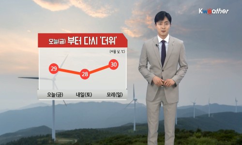 ¿À´Ã(12ÀÏ‧±Ý)Àº »ïº¹ÀÇ Ã¹ ¹øÂ° º¹À¸·Î ´õÀ§°¡ º»°ÝÀûÀ¸·Î ½ÃÀ۵Ǵ Ãʺ¹ÀÌ´Ù. º¸¾ç½Äµµ µå½Ã¸é¼ À̹ø ¿©¸§µµ °Ç°ÇÏ°Ô º¸³»½Ã±â ¹Ù¶ó¸ç, À帶°¡ ³¡³ª¸é¼ ¿À´ÃºÎÅÍ´Â ´Ù½Ã ±â¿ÂÀÌ ¿À¸§¼¼¸¦ º¸À̰ڴÙ. ¿À´Ã ¼¿ïÀÇ ³· ±â¿ÂÀº 28¡É, ÁÖ¸»¿¡´Â 30¡É¼±±îÁö »ó½ÂÇÏ¸é¼ ½ÀÇÑ ´õÀ§°¡ ã¾Æ¿Ã °ÍÀ¸·Î º¸¿© ´õÀ§¿¡ ´ëÇÑ ´ëºñ¸¦ Àß Çϼž߰ڴÙ. ¹Î°£±â»ó±â¾÷ ÄÉÀÌ¿þ´õ´Â ¡°¿À´Ã(12ÀÏ‧±Ý) ¿ì¸®³ª¶ó´Â ¼ÇØ»ó¿¡ À§Ä¡ÇÑ °í±â¾ÐÀÇ °¡ÀåÀÚ¸®¿¡ µé¸é¼ Àü±¹ÀÌ È帮°Å³ª ±¸¸§ ¸¹Àº °¡¿îµ¥, ´ë±âºÒ¾ÈÁ¤À¸·Î ÀÎÇØ °æ±âºÏºÎ¿Í °¿ø¿µ¼¿¡´Â ¿ÀÈÄ ÇѶ§ 5~20mmÀÇ ¼Ò³ª±â°¡ ³»¸®´Â °÷ÀÌ ÀÖ°Ú´Ù¡±°í ÀüÇß´Ù. ÄÉÀÌ¿þ´õ ¿¹º¸ °ü°èÀÚ´Â ¡°ÇöÀç Àü±¹ ´ëºÎºÐ Áö¿ªÀÌ È帰 ³¯¾¾¸¦ º¸À̰í ÀÖ´Ù¡±°í ¸»Çß´Ù. * (ÃÊ)¹Ì¼¼¸ÕÁö ¿¹º¸ - ȯ°æºÎ ±âÁØ : Àü±¹ ¡®ÁÁÀ½¡¯ - WHO ±âÁØ : Àü±¹ ¡®º¸Å롯~¡®ÁÁÀ½¡¯ ¾ÆÄ§ ÃÖÀú±â¿ÂÀº ¼¿ï 21¡É, ÀÎõ‧¼ö¿ø‧´ëÀü‧ûÁÖ 20¡É, Ãáõ 19¡É, ±¤ÁÖ‧ºÎ»ê‧´ë±¸ 21¡É, ÀüÁÖ 20¡É, Á¦ÁÖ 22¡É, ¼ÓÃÊ‧¿ïÁø 20¡É, °¸ª‧¿ï¸ªµµ 19¡É, ¹é·Éµµ 17¡É¸¦ º¸À̰ڴÙ. ³· ÃÖ°í±â¿ÂÀº ¼¿ï‧Ãáõ‧´ëÀü‧ûÁÖ 29¡É, ÀÎõ 26¡É, ±¤ÁÖ‧ÀüÁÖ 29¡É, ºÎ»ê 27¡É, ´ë±¸ 30¡É, Á¦ÁÖ‧¼ÓÃÊ‧°¸ª‧¿ïÁø‧¹é·Éµµ 26¡É, ¿ï¸ªµµ 24¡É¸¦ º¸À̰ڴÙ. ¿À´Ã ¼ÇØ¿Í ³²ÇØ»óÀ¸·Î´Â ±¸¸§¸¸ ¸¹ÀÌ ³¢°ÚÁö¸¸, ƯÈ÷ µ¿ÇØ»óÀ¸·Î´Â È帰 ³¯¾¾¿Í ÇÔ²² ¹Ù´ÙÀÇ ¹°°á ¿ª½Ã ÃÖ°í 4m±îÁö ³ô°Ô ÀϰڴÙ. µ¿ÇØ Áö¿ªÀ¸·Î´Â ÃâÇ× ÇÏ½Ç ¶§ °¢º°È÷ ÁÖÀÇÇϱ⠹ٶõ´Ù. À帶°¡ ³¡³µÁö¸¸, ´ë±â´Â ¿©ÀüÈ÷ ºÒ¾ÈÁ¤ÇÑ »óŰ¡ À̾îÁö¸é¼ ÁÖ¸»¿¡µµ ºø¹æ¿ïÀÌ ¶³¾îÁö°Ú´Ù. ³»ÀÏ Åä¿äÀÏ(13ÀÏ)Àº ÁߺÎÁö¹æ¿¡ ¿ÀÀü ÇѶ§ ºñ°¡ ³»¸®°Ú°í, Á¦ÁÖµµ ¿ª½Ã ºñ°¡ ³»¸± °ÍÀ¸·Î Àü¸ÁµÈ´Ù. ¿ÀÁÖÈ£ ¿ÂÄÉÀÌ¿þ´õ ±â»óij½ºÅÍ osw410@naver.com