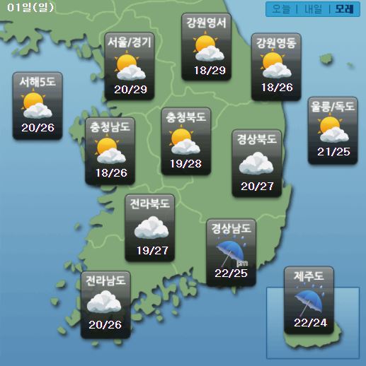 8¿ù ¸¶Áö¸· ÁÖ¸»ÀÎ ³»ÀÏ Åä¿äÀÏ(31ÀÏ)Àº Àü±¹ÀÌ ´ëü·Î ¸¼Àº ÇÏ´ÃÀ» º¸À̰ÚÀ¸³ª ÀÏ¿äÀÏ(9¿ù 1ÀÏ)Àº ³²ÇؾȰú Á¦ÁÖµµ¿¡ ºñ°¡ ¿À°Ú´Ù.