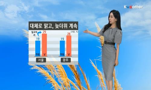 È¿äÀÏÀÎ ³»ÀÏ(17ÀÏ¡¤È)µµ ´ëü·Î ¸¼Àº °¡¿îµ¥ ´Ê´õÀ§°¡ À̾îÁö°Ú´Ù. ¹Î°£±â»ó±â¾÷ ÄÉÀÌ¿þ´õ¿¡ µû¸£¸é ³»ÀÏ(17ÀÏ¡¤È)Àº µ¿ÇغϺÎÇØ»ó¿¡ À§Ä¡ÇÑ °í±â¾ÐÀÇ ¿µÇâÀ» ¹Þ¾Æ ÁߺϺδ ¹ãºÎÅÍ °¡²û ±¸¸§ ¸¹¾ÆÁö°Ú°í, ±× ¹ÛÀÇ Àü±¹Àº ´ëü·Î ¸¼°Ú´Ù. ¾ÆÄ§ ÃÖÀú±â¿ÂÀº 16~22¡É·Î ¼´ÃÇÔÀÌ °¨µ¹°Ú°í, ³· ÃÖ°í±â¿ÂÀº 24~29¡É·Î ´Ê´õÀ§°¡ °è¼ÓµÇ°Ú´Ù. ÇÏ·ç»çÀÌ ±â¿ÂÀÇ º¯È°¡ 10¡É ÀÌ»ó Â÷À̰¡ ³ª´Â ¸¸Å ȯÀý±â °Ç°°ü¸®¿¡ À¯ÀÇÇØ¾ß°Ú´Ù. ¹Ì¼¼¸ÕÁö ³óµµ´Â 'ÁÁÀ½' ´Ü°è·Î ´ë±â ÁúÀº ûÁ¤ÇϰڴÙ. µû¶ó¼ ½Ç³» ȯ±â ¹× ¹Ù±ùȰµ¿À» Çϱâ ÁÁ°Ú´Ù. ´Ù¸¸, Àڿܼ± Áö¼ö°¡ ³ô°Ô ¿À¸£´Â ¸¸Å Àå½Ã°£ ¿ÜÃâÀº »ï°¡¾ß°Ú´Ù. ¿À´Ã ¹ãºÎÅÍ µ¿Çس²ºÎ¸Õ¹Ù´Ù¿Í ³²Çص¿ºÎ¸Õ¹Ù´Ù, Á¦ÁÖ³²ÂʸչٴٷΠ¹Ù¶÷ÀÌ Â÷Â÷ °ÇÏ°Ô ºÒ°Ú°í, ¹°°áµµ ÃÖ°í 3~4m±îÁö ³ô¾ÆÁö°Ú´Ù. ÀÌ¿¡ µû¶ó dz¶û¿¹ºñƯº¸°¡ ³»·ÁÁø »óÅ´Ù. Ç×ÇØÇϰųª Á¶¾÷ÇÏ´Â ¼±¹ÚÀº Á¶½ÉÇØ¾ß°Ú´Ù. À̹ø ÁÖ ³»³» ¸¼Àº ÇÏ´ÃÀÌ ÆîÃÄÁö°Ú°í, ÁÖ ÈĹÝÂë ´Ê´õÀ§µµ ÁÖÃãÇÏ¸é¼ ³·¿¡µµ ¼±¼±ÇØÁú Àü¸ÁÀÌ´Ù.