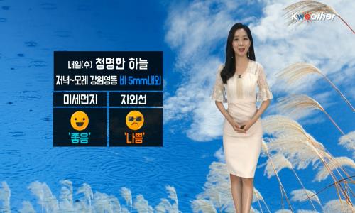 ¼ö¿äÀÏÀÎ ³»ÀÏ(18ÀÏ¡¤¼ö)µµ ÄèûÇÑ °¡À» ÇÏ´ÃÀÌ ¿¹»óµÈ´Ù. ´Ù¸¸, °¿ø¿µµ¿Àº Àú³áºÎÅÍ ¾à°£ÀÇ ºñ°¡ ³»¸± °ÍÀ¸·Î º¸ÀδÙ. ¹Î°£±â»ó±â¾÷ ÄÉÀÌ¿þ´õ¿¡ µû¸£¸é ³»ÀÏ(18ÀÏ¡¤¼ö)Àº Áß±¹ ºÏºÎÁö¹æ¿¡¼ µ¿ÇØ»óÀ¸·Î ³²µ¿ÁøÇÏ´Â °í±â¾ÐÀÇ ¿µÇâÀ» ¹Þ°Ú´Ù. Àü±¹ÀÌ °¡²û ±¸¸§ ¸¹°ÚÀ¸³ª, µ¿Ç³ÀÇ ¿µÇâÀ» ¹Þ´Â °¿ø¿µµ¿Àº Àú³áºÎÅÍ Â÷Ãû Èå·ÁÁ® ¹ã¿¡ ºñ°¡ ¿À´Â °÷ÀÌ ÀÖ°Ú´Ù. ¿¹»ó °¼ö·®(18~19ÀÏ) -°¿ø¿µµ¿ : 5mm ³»¿Ü ¾ÆÄ§ ÃÖÀú±â¿ÂÀº 14~20¡É·Î ÇÑÃþ ´õ ¼´ÃÇØÁö°Ú°í, ³· ÃÖ°í±â¿ÂÀº 25~30¡É±îÁö ¿À¸£°Ú´Ù. ÃæÃ» À̳²À» Áß½ÉÀ¸·Î 28~29¡É±îÁö ¿Ã¶ó ´Ù¼Ò ´þ°Ú°í, ±× ¹ÛÀÇ Áö¿ªÀº ¼±¼±ÇÒ °ÍÀ¸·Î ¿¹»óµÈ´Ù. ¹Ì¼¼¸ÕÁö ³óµµ´Â 'ÁÁÀ½' ´Ü°è·Î °ø±â ÁúÀº ±ú²ýÇϰڴÙ. ´Ù¸¸, Àڿܼ± Áö¼ö°¡ '³ª»Ý' ´Ü°è±îÁö ¿À¸£´Â ¸¸Å Àڿܼ± Â÷´Ü¿¡ ½Å°æÀ» ½á¾ß°Ú´Ù. ³»ÀÏ(18ÀÏ¡¤¼ö) ³²Çص¿ºÎ¸Õ¹Ù´Ù´Â »õº®±îÁö, Á¦ÁÖ³²Âʸչٴٴ ¾ÆÄ§±îÁö ¹Ù¶÷ÀÌ °ÇÏ°Ô ºÒ°Ú°í, ¿ÀÈĺÎÅÍ ¼ÇØ¸Õ¹Ù´Ù¿Í µ¿Çظչٴٵµ °ÇÑ ¹Ù¶÷ÀÌ ºÒ°Ú´Ù. ÀÌ¿¡ µû¶ó ¹°°áÀÌ ³ô°Ô ÀÏ °ÍÀ¸·Î º¸ÀÌ´Â ¸¸Å ¾ÕÀ¸·Î ¹ßÇ¥µÇ´Â ±â»óÁ¤º¸¸¦ Àß È®ÀÎÇØ¾ß°Ú´Ù. ³»ÀÏ(18ÀÏ¡¤¼ö)ºÎÅÍ´Â ³·¿¡µµ ¼±¼±ÇÔÀÌ °¨µ¹°Ú°í, ¾ÆÄ§, Àú³á¿¡´Â ÇÑÃþ ´õ ¼´ÃÇϰųª ½Ò½ÒÇØÁö°Ú´Ù. ¶Ç ´çºÐ°£ °¡²û ±¸¸§¸¸ Áö³ª°ÚÁö¸¸ ³»ÀÏ(18ÀÏ¡¤¼ö)°ú ¸ð·¹(19ÀÏ¡¤¸ñ) °¿ø¿µµ¿¿¡´Â ºñ°¡ ³»¸± °ÍÀ¸·Î ¿¹»óµÈ´Ù.