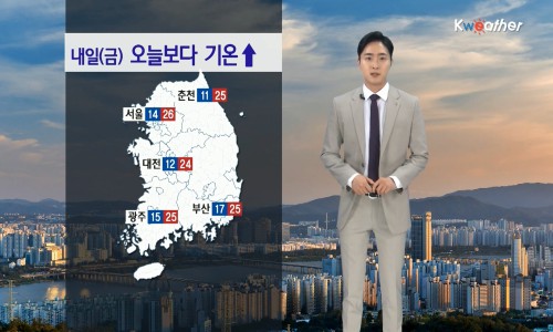 ÇöÀç ±¸¸§¿¡ ÇÞºûÀÌ °¡·ÁÁö¸é¼ ±â¿ÂÀÌ Å©°Ô ¿À¸£Áö ¸ø Çϰí ÀÖÁö¸¸, ³»ÀÏ(11ÀÏ‧±Ý)Àº ¿À´Ã(10ÀÏ‧¸ñ)º¸´Ù ±â¿ÂÀÌ ¿Ã¶ó Çѳ·¿¡ ´Ù¼Ò ´õ¿î ³¯¾¾°¡ À̾îÁö°Ú´Ù. ³»ÀÏ ¼¿ïÀÇ ³· ±â¿ÂÀº 26¡É·Î ¿À´Ãº¸´Ù 6¡É°¡·® ¿À¸£°Ú°í, ´ëÀü 24¡É, Ãáõ°ú ±¤ÁÖ, ºÎ»êÀº 25¡É¸¦ ±â·ÏÇÏ¸é¼ Àü¹ÝÀûÀ¸·Î ±â¿ÂÀÌ »ó½ÂÇϰڴÙ. ¿äÁò ±Þ°ÝÇÑ ±â¿Âº¯È Å¿¿¡ °¨±â¸ö»ì¿¡ °É¸®½Å ºÐµéÀÌ ¸¹À¸½ÇÅÙµ¥, ¾ÆÄ§Àú³áÀ¸·Î ÀÌÁ¦´Â ½Ò½ÒÇϱ⠶§¹®¿¡ ¿ÜÃ⠽ÿ¡´Â ¹Ýµå½Ã µÎ²¨¿î ¿ÊÂ÷¸²À» Çϱ⠹ٶõ´Ù. ¹Î°£±â»ó±â¾÷ ÄÉÀÌ¿þ´õ´Â ¡°³»ÀÏ(11ÀÏ‧±Ý) ¿ì¸®³ª¶ó´Â Áß±¹ ºÏµ¿ÂÊ¿¡ À§Ä¡ÇÑ °í±â¾ÐÀÇ ¿µÇâÀ» ¹Þ°Ú´Ù. ÀÌ·Î ÀÎÇØ °¿ø¿µµ¿°ú °æºÏ µ¿ÇؾÈÀº µ¿Ç³ÀÇ ¿µÇâÀ¸·Î Á¡Â÷ Èå·ÁÁö´Ù°¡ ¿ÀÈĺÎÅÍ 5~20mm ºñ°¡ ³»¸®°ÚÁö¸¸, ±× ¹ÛÀÇ Áö¿ªÀº ´ëü·Î ¸¼Àº ³¯¾¾°¡ À̾îÁö°Ú´Ù¡±°í ÀüÇß´Ù. ÄÉÀÌ¿þ´õ ¿¹º¸ °ü°èÀÚ´Â ¡°ÇöÀç À§¼º¿µ»ó¿¡´Â º¸½Ã´Â °Íó·³ Àü±¹ Çϴÿ¡ ±¸¸§ ¸¹Àº ³¯¾¾°¡ À̾îÁö°í ÀÖ´Ù.¡±°í ¸»Çß´Ù. * (ÃÊ)¹Ì¼¼¸ÕÁö ¿¹º¸ - ȯ°æºÎ ±âÁØ : µ¿ÂÊÁö¹æ ¿ÀÀü ¡®º¸Å롯, ¿ÀÈÄ ¡®ÁÁÀ½¡¯ / ¼ÂÊÁö¹æ ¡®º¸Å롯 - WHO ±âÁØ : Àü±¹ ¡®º¸Å롯 ¾ÆÄ§ ÃÖÀú±â¿ÂÀº ¼¿ï‧ÀÎõ 14¡É, ¼ö¿ø 13¡É, Ãáõ 11¡É, ´ëÀü‧ûÁÖ 12¡É, ±¤ÁÖ 15¡É, ÀüÁÖ 13¡É, ºÎ»ê‧Á¦ÁÖ 17¡É, ´ë±¸ 12¡É, ¼ÓÃÊ‧°¸ª 13¡É, ¿ïÁø 14¡É, ¿ï¸ªµµ 16¡É, ¹é·Éµµ 13¡É¸¦ º¸À̰ڴÙ. ³· ÃÖ°í±â¿ÂÀº ¼¿ï 26¡É, ÀÎõ‧´ëÀü‧ûÁÖ 24¡É, ¼ö¿ø‧Ãáõ 25¡É, ±¤ÁÖ‧ºÎ»ê 25¡É, ÀüÁÖ‧Á¦ÁÖ 24¡É, ´ë±¸ 26¡É, ¼ÓÃÊ‧¿ïÁø 22¡É, °¸ª 21¡É, ¿ï¸ªµµ 20¡É, ¹é·Éµµ 23¡É¸¦ º¸À̰ڴÙ. ³»ÀÏ µ¿ÇØ»óÀ¸·Î´Â ÃâÇ× ½Ã¿¡ ÁÖÀÇÇϱ⠹ٶõ´Ù. ¹Ù´ÙÀÇ ¹°°áÀº ÃÖ°í 4m±îÁö ³ô°Ô ÀÏ°Ú°í ¿©±â¿¡ ºñ ¼Ò½Ä±îÁö ÀÖ¾î ±â»óÁ¤º¸¸¦ Àß Âü°íÇØ¾ß°Ú´Ù. ³»ÀϺÎÅÍ À̹ø ÁÖ ÁÖ¸»±îÁö´Â ¾ÆÄ§±â¿ÂÀÌ ´Ù¼Ò ¿À¸£°ÚÁö¸¸, ¿©ÀüÈ÷ Å« Àϱ³Â÷¿¡´Â °è¼ÓÇØ¼ ÁÖÀǸ¦ ±â¿ï¿©¾ß°Ú°í, ´ÙÀ½ ÁÖ ¿ù¿äÀÏ(14ÀÏ)ºÎÅÍ´Â ³· ±â¿ÂÀÌ 20¡É¼±À» ¹Øµ¹¸ç ³· ±â¿Â ¿ª½Ã Á¡Á¡ ¶³¾îÁú °ÍÀ¸·Î Àü¸ÁµÈ´Ù. ¿ÀÁÖÈ£ ¿ÂÄÉÀÌ¿þ´õ ±â»óij½ºÅÍ osw410@naver.com
