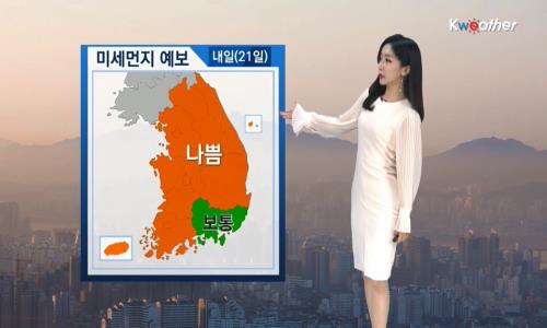 ¿ù¿äÀÏÀÎ ³»ÀÏ(21ÀÏ¡¤¿ù)µµ ´ëü·Î ¸¼Àº °¡¿îµ¥ Àϱ³Â÷°¡ Å©°Ô ¹ú¾îÁö°Ú°í, Àü±¹ÀûÀ¸·Î °ø±â ÁúÀÌ Å¹ÇÒ °ÍÀ¸·Î º¸ÀδÙ. ¹Î°£±â»ó±â¾÷ ÄÉÀÌ¿þ´õ¿¡ µû¸£¸é ³»ÀÏ(21ÀÏ¡¤¿ù)Àº Áß±¹ ºÏºÎÁö¹æ¿¡¼ µ¿ÁøÇÏ´Â °í±â¾ÐÀÇ ¿µÇâÀ» ¹Þ¾Æ Àü±¹ÀÌ ´ëü·Î ¸¼°Ú°í, ³²µ¿ÇؾÈÀº ±¸¸§ ¸¹°Ú´Ù. ¾ÆÄ§ ÃÖÀú±â¿ÂÀº 9~15¡É·Î ½Ò½ÒÇϰڰí, ³· ÃÖ°í±â¿ÂÀº 20~24¡É·Î ¿¹³â À̸¾¶§ º¸´Ù ³ôÀº ±â¿ÂÀ» º¸ÀÌ¸ç ¼±¼±ÇϰڴÙ. ¹Ì¼¼¸ÕÁö ³óµµ´Â ±¹³»/¿Ü ¿À¿°¹°ÁúÀÇ ¿µÇâÀ¸·Î ºÎ»ê°ú ¿ï»ê, °æ³²À» Á¦¿ÜÇÑ Àü±¹¿¡¼ '³ª»Ý' ´Ü°è°¡ ¿¹»óµÈ´Ù. ¿ÜÃ⠽à ¹Ì¼¼¸ÕÁö¿ë ¸¶½ºÅ©¸¦ ¹Ýµå½Ã ì°Ü¾ß°Ú´Ù. ¹Ù´ÙÀÇ ¹°°áÀº ³²ÇØ»óÀ¸·Î ÃÖ°í 2.5m±îÁö ¾à°£ ³ô°Ô ÀϰڴÙ. ´ÙÀ½ ÁÖ ±¸¸§ ¸¹°Ú°í, ¸ñ¿äÀÏ(24ÀÏ) Á¦ÁÖµµ¿¡´Â ºñ ¼Ò½ÄÀÌ µé¾î ÀÖ´Ù. ÇÑÆí, ±â¿ÂÀº ÁÖ ÈĹÝÀ¸·Î °¥¼ö·Ï ³»¸²¼¼¸¦ º¸ÀÌ¸é¼ ´Ù½Ã ½Ò½ÒÇØÁú °ÍÀ¸·Î Àü¸ÁµÈ´Ù.