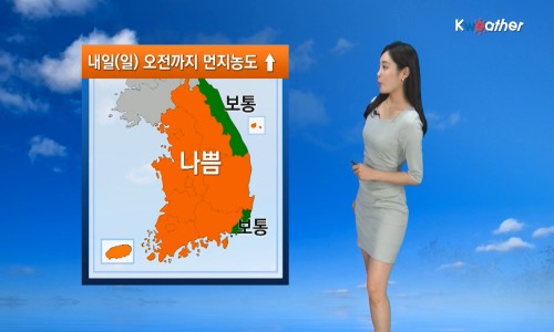 ÀÏ¿äÀÏÀÎ ³»ÀÏ(3ÀÏ¡¤ÀÏ)Àº ¿ÀÀü±îÁö °ø±â ÁúÀÌ ÁÁÁö ¸øÇϰÚÁö¸¸ ¿ÀÈÄ¿¡ 'º¸Åë' ¼öÁØÀ» ȸº¹ÇϰڴÙ. ÇÑÆí, µ¿ÇØ¾È Áö¿ªÀº µ¿Ç³ÀÇ ¿µÇâÀ» ¹Þ¾Æ ºñ°¡ ¿À°Ú´Ù. °¿ø¿µµ¿°ú °æºÏºÏºÎ µ¿Çؾȿ¡ 20~60mm, °æ»ó µ¿ÇؾȰú Á¦ÁÖµµ¿¡ 5~20mm°¡ µÇ°Ú´Ù. ¹Î°£±â»ó±â¾÷ ÄÉÀÌ¿þ´õ¿¡ µû¸£¸é ³»ÀÏ(3ÀÏ¡¤ÀÏ)Àº Áß±¹ ºÏµ¿Áö¹æ¿¡¼ ³²ÇÏÇÏ´Â °í±â¾ÐÀÇ °¡ÀåÀÚ¸®¿¡ µé°Ú´Ù. ¾ÆÄ§ ÃÖÀú±â¿ÂÀº 7~15¡É, ³· ÃÖ°í±â¿ÂÀº 17~21¡ÉÀÇ ±â¿ÂºÐÆ÷¸¦ º¸À̰ڴÙ. ¹Ì¼¼¸ÕÁö ³óµµ´Â '³ª»Ý' ´Ü°è·Î °ø±â ÁúÀÌ ³ª»Ú°Ú´Ù. ´Ù¸¸, ¿ÀÈÄ¿¡ ¸ÕÁö ³óµµ´Â Â÷Ãû 'º¸Åë' ¼öÁØÀ¸·Î ȸº¹µÇ°Ú´Ù. ¹Ù´ÙÀÇ ¹°°áÀº 0.5~3.5m·Î ³ô°Ô ÀϰڴÙ. ³»ÀϺÎÅÍ ¸ð·¹±îÁö ºñ°¡ ¿À´Â Áö¿ªÀ» Á¦¿ÜÇÑ ±× ¹ÛÀÇ Áö¿ªµéÀº ±¸¸§¸¸ Áö³ª°Ú°í, Å« Àϱ³Â÷¿¡ À¯ÀÇÇϱ⠹ٶõ´Ù.