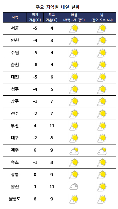 ¸ñ¿äÀÏÀÎ ³»ÀÏ(19ÀÏ)Àº Àü±¹ÀÌ ´ëü·Î ¸¼Àº °¡¿îµ¥ Áߺγ»·úÀ» Áß½ÉÀ¸·Î ¾ÆÄ§¿¡ ¿µÇϱÇÀ» º¸À̸ç Ãä°Ú´Ù. ¹Î°£±â»ó±â¾÷ ÄÉÀÌ¿þ´õ´Â ¡°³»ÀÏ ¿ì¸®³ª¶ó´Â Áß±¹ »êµÕ¹Ýµµ ºÎ±Ù¿¡ À§Ä¡ÇÑ °í±â¾ÐÀÇ ¿µÇâÀ» ¹Þ°Ú´Ù¡±¸ç ¡°Àü±¹ÀÌ ´ëü·Î ¸¼°ÚÀ¸³ª °æ»óµ¿ÇؾÈÀº »õº®±îÁö ºñ°¡ ¿Â ÈÄ °³°Ú°í, ¼ÇØ 5µµ´Â Àú³áºÎÅÍ ´« ¶Ç´Â ºñ°¡ ³»¸®°Ú´Ù¡±°í ¿¹º¸Çß´Ù. * ¿¹»ó °¼ö·®(~20ÀÏ) - ¼ÇØ5µµ : 5mm³»¿Ü * ¿¹»ó Àû¼³·®(~20ÀÏ) - ¼ÇØ5µµ : 1cm³»¿Ü