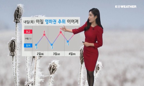 ¸ñ¿äÀÏÀÎ ³»ÀÏ(2ÀÏ¡¤¸ñ)Àº Àü±¹ÀÌ ±¸¸§ÀÌ ¸¹´Ù°¡ Á¡Â÷ ¸¼¾ÆÁö°Ú°í, °¿ø¿µµ¿°ú °æ»óµµ´Â ´ëü·Î ¸¼°Ú´Ù. ¹Î°£±â»ó±â¾÷ ÄÉÀÌ¿þ´õ¿¡ µû¸£¸é ³»ÀÏ(2ÀÏ¡¤¸ñ)Àº Áß±¹ »óÇØ ºÎ±Ù¿¡¼ µ¿ÁøÇÏ´Â °í±â¾ÐÀÇ °¡ÀåÀÚ¸®¿¡ µé°Ú´Ù. ¾ÆÄ§ ÃÖÀú±â¿ÂÀº -7~2¡É, ³· ÃÖ°í±â¿ÂÀº 3~10¡ÉÀÇ ±â¿ÂºÐÆ÷¸¦ º¸À̰ڴÙ. ¹Ì¼¼¸ÕÁö ³óµµ´Â °¿ø¿µµ¿À» Á¦¿ÜÇÑ ÁߺÎÁö¹æ ¿ÀÀü¿¡ 'ÇѶ§ ³ª»Ý' ´Ü°è, ¿ÀÈÄ¿¡´Â '³ª»Ý' ±îÁö Ä¡¼Ú°Ú°í, ±× ¹ÛÀÇ Áö¿ª¿¡¼µµ ¿ÀÈÄ¿¡ 'ÇѶ§ ³ª»Ý' ¼öÁرîÁö ¿À¸£¸ç °ø±â°¡ ŹÇϰڴÙ. ¹Ù´ÙÀÇ ¹°°áÀº 0.5~2.5m·Î ¾à°£ ³ô°Ô ÀϰڴÙ.