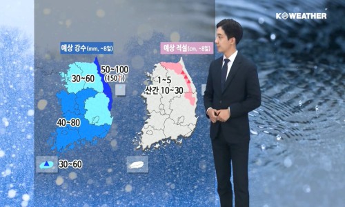 ¿À´Ã(6ÀÏ‧¿ù)Àº Àü±¹ÀÌ ´ëü·Î È帮°í ºñ°¡ ¿À°Ú´Ù. ¾ÆÄ§¿¡ Àü¶óµµ¿Í ÃæÃ»µµ¿¡¼ ½ÃÀÛµÈ ºñ´Â, ¿ÀÈÄ¿¡ ¼¿ï°æ±â¿Í °æ»óµµ, Á¦ÁÖµµ±îÁö È®´ëµÇ°Ú°í, ¹ã¿¡´Â °¿øµµ±îÁö Á¡Â÷ È®´ëµÇ°Ú´Ù. ¹Î°£±â»ó±â¾÷ ÄÉÀÌ¿þ´õ´Â ¡°¿À´Ã(6ÀÏ‧¿ù) ¿ì¸®³ª¶ó´Â ¼ÂÊ¿¡¼ ´Ù°¡¿À´Â Àú±â¾ÐÀÇ ¿µÇâÀ» ¹Þ°Ú´Ù¡±¸ç ¡°¿ÀÀü¿¡ Áß¼ºÎÁö¿ªÀ» Áß½ÉÀ¸·Î ´ë±â ÁúÀÌ ÁÁÁö ¸øÇϰÚÀ¸³ª ¿ÀÈĺÎÅÍ´Â Àü±¹ÀÌ ¾çÈ£Çϰڴ١±°í ÀüÇß´Ù. ÄÉÀÌ¿þ´õ ¿¹º¸°ü°èÀÚ´Â ¡°¿À´Ã(6ÀÏ‧¿ù)Àº ¿¬Áß °¡Àå Ãä´Ù´Â Àý±â ¡®¼ÒÇÑ¡¯ÀÌÁö¸¸ Àü±¹¿¡ Å« ÃßÀ§ ¾ø°Ú´Ù¡±¸ç ¡°µ¿ÇؾȰú Á¦ÁÖ»êÁö¿¡´Â ºñ°¡ ¿À±â Àü±îÁö ´ë±â°¡ ¸Å¿ì °ÇÁ¶ÇÏ´Ï ÈÀ翹¹æ¿¡ °¢º°È÷ ½Å°æ ½á¾ßÇÑ´Ù¡±°í ÀüÇß´Ù. * ¿¹»ó °¼ö·®(6~8ÀÏ) - µ¿ÇؾÈ, Á¦Áֻ갣 : 50~100mm (¸¹Àº °÷ 150mm ÀÌ»ó) - ÃæÃ»µµ, Àü¶óµµ, °æ»ó³²µµ : 40~80mm - ±× ¹ÛÀÇ Àü±¹ : 30~60mm *¿¹»ó Àû¼³(6~8ÀÏ) - °¿ø»êÁö : 10~30cm - °¿øºÏºÎ, °æºÏºÏºÎ»êÁö : 1~5cm * (ÃÊ)¹Ì¼¼¸ÕÁö ¿¹º¸ - ȯ°æºÎ ±âÁØ : ¿ÀÀü Áß¼ºÎ, °¿ø¿µ¼ ¡®³ª»Ý¡¯ ~ ¡®ÇѶ§ ³ª»Ý¡¯, ±× ¹ÛÀÇ Àü±¹ ¡®º¸Å롯 / ¿ÀÈÄ Àü±¹ ¡®ÁÁÀ½¡¯ ~ ¡®º¸Å롯 - WHO ±Ç°í±âÁØ : ¿ÀÀü Áß¼ºÎ, °¿ø¿µ¼, ÀüºÏ, °æºÏ ¡®³ª»Ý¡¯, ±× ¹ÛÀÇ Àü±¹ ¡®º¸Å롯 / ¿ÀÈÄ Áß¼ºÎ, °¿ø¿µ¼ ¡®³ª»Ý¡¯, ±× ¹ÛÀÇ Àü±¹ ¡®º¸Å롯 ¾ÆÄ§ ÃÖÀú±â¿Â -9~10¡É, ³· ÃÖ°í±â¿Â 3~11¡É ¿¡ ¸Ó¹°°Ú´Ù. ±â¾Ð°ñÀÇ ¿µÇâÀ¸·Î ³»ÀÏ(7ÀÏ‧È)Àº Àü±¹ÀûÀ¸·Î ºñ°¡ ¿À°Ú°í, ¸ð·¹(8ÀÏ‧¼ö)´Â ºñ ¶Ç´Â ´«ÀÌ ¿À°Ú´Ù. ¶ÇÇÑ ´çºÐ°£ Àü±¹ÀÌ È帮°í, Å« ÃßÀ§´Â ¾øÀ» °ÍÀ¸·Î ¿¹»óµÈ´Ù. °í°¿ë ¿ÂÄÉÀÌ¿þ´õ ±â»óij½ºÅÍ kogy95@naver.com