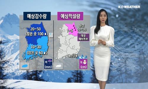 ¼ö¿äÀÏÀÎ ³»ÀÏ(8ÀÏ¡¤¼ö)µµ Àü±¹¿¡ ºñ¿Í ´«ÀÌ À̾îÁö°Ú°í, °¿ø»ê°£¿¡´Â Æø¼³ÀÌ ÇØ¾È¿¡´Â °Ç³ÀÌ ¿¹»óµÅ ¾ÈÀü¿¡ ÁÖÀǰ¡ ¿ä±¸µÈ´Ù. ¹Î°£±â»ó±â¾÷ ÄÉÀÌ¿þ´õ¿¡ µû¸£¸é ³»ÀÏ(8ÀÏ¡¤¼ö)Àº Àú±â¾ÐÀÇ ¿µÇâÀ» ¹Þ´Ù°¡ Á¡Â÷ ¹þ¾î³ª°Ú´Ù. Àü±¹ÀÌ È帰 °¡¿îµ¥ ºñ¿Í ´«ÀÌ ¿À°Ú´Ù. ÃæÃ» À̳²Àº »õº®±îÁö, ÁߺϺδ ¾ÆÄ§±îÁö, °¿ø»ê°£Àº ³·±îÁö À̾îÁö´Ù ¹ãºÎÅÍ ´Ù½Ã ´« ¶Ç´Â ºñ°¡ ³»¸± °ÍÀ¸·Î º¸ÀδÙ. *¿¹»ó °¼ö·®(~8ÀÏ) -ÁߺΠ: 20~50mm(¸¹Àº °÷ 100mmÀÌ»ó) -³²ºÎ, Á¦ÁÖµµ : 10~30mm(¸¹Àº °÷ 60mmÀÌ»ó) *¿¹»ó Àû¼³(~8ÀÏ) -°¿ø»ê°£ : 10~30cm -°¿ø³»·ú : 1~5cm ¾ÆÄ§ ÃÖÀú±â¿ÂÀº -1~8¡É, ³· ÃÖ°í±â¿ÂÀº 1~11¡É·Î Æò³â±â¿ÂÀ» Å©°Ô ¿ôµ¹¸ç À̸¾¶§ °Ü¿ï³¯¾¾ Ä¡°í ¿ÂÈÇϰڴÙ. ¹Ì¼¼¸ÕÁö ³óµµ´Â ´ëü·Î 'º¸Åë' ¼öÁØÀ» À¯ÁöÇÏ¸ç ¾çÈ£ÇϰÚÁö¸¸ Áß¼ºÎ¿Í °¿ø¿µ¼´Â ±¹³»/¿Ü ¿À¿°¹°ÁúÀÌ Á¤Ã¼ÇÏ°í ½×ÀÌ¸é¼ ¿ÀÈĺÎÅÍ ¸ÕÁö³óµµ°¡ Â÷Ãû ³ô¾ÆÁö°Ú´Ù. °¿ø»ê°£ÀÇ ´«°ú ºñ´Â ¸ñ¿äÀÏ(9ÀÏ)¿¡ Â÷Ãû ±×Ä¡°Ú°í, ºñ°¡ ±×Ä£ µÚ¿¡´Â ´Ù½Ã ±â¿ÂÀÌ Å©°Ô ³»·Á°¡¸é¼ ³¯ÀÌ Ãß¿öÁú °ÍÀ¸·Î ¿¹»óµÈ´Ù.