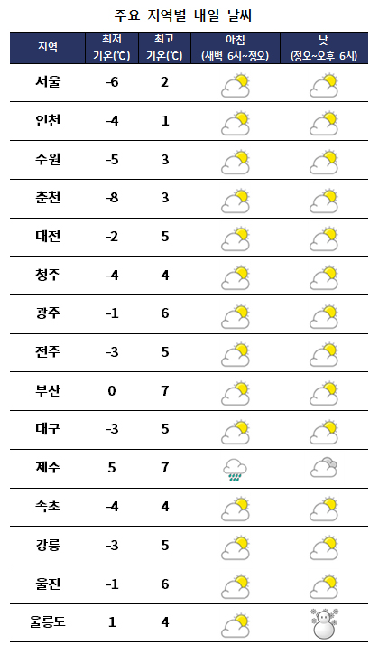 ¾ÆÄ§ ÃÖÀú±â¿ÂÀº -8¡É¿¡¼ 5¡É, ³· ÃÖ°í±â¿ÂÀº 1¡É¿¡¼ 7¡É°¡ µÇ°Ú´Ù.
