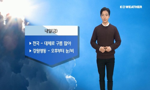 ³»ÀÏ(17ÀÏ‧±Ý)Àº Àü±¹ÀÌ ´ëü·Î ±¸¸§ÀÌ ¸¹Àº °¡¿îµ¥ Á¦ÁÖµµ´Â È帮°Ú´Ù. °¿ø¿µµ¿Àº µ¿Ç³ÀÇ ¿µÇâÀ» ¹Þ¾Æ Á¡Â÷ Èå·ÁÁ® ºñ ¶Ç´Â ´«ÀÌ ¿À°Ú´Ù. ÇÑÆí, ³»ÀÏ(17ÀÏ‧±Ý) ¾ÆÄ§±â¿Â ¼¿ïÀÌ -6¡É º¸ÀÌ¸ç ¿À´Ã(16ÀÏ‧¸ñ)°ú ºñ½ÁÇØ Ãä°Ú´Ù. ³·¿¡´Â ±â¿ÂÀÌ ¿Ã¶ó¼ Æò³â À̸¾ ¶§ ¼öÁØÀ» ¿ôµ¹¸ç Å« ÃßÀ§ ¾ø°Ú´Ù. ¹Î°£±â»ó±â¾÷ ÄÉÀÌ¿þ´õ´Â ¡°³»ÀÏ(17ÀÏ‧±Ý)Àº Áß±¹ ºÏºÎÁö¹æ¿¡ À§Ä¡ÇÑ °í±â¾ÐÀÇ °¡ÀåÀÚ¸®¿¡ µé°Ú´Ù¡±¸ç ¡°µ¿ÇؾȰú °¿ø»êÁö, °æºÏ ÀϺΠ³»·ú¿¡´Â °ÇÁ¶ Ưº¸°¡ ¹ßÈ¿ ÁßÀÌ´Ï »êºÒÀ̳ª °¢Á¾ ÈÀç ¿¹¹æ¿¡ À¯ÀÇÇØ¾ßÇÑ´Ù¡±°í ÀüÇß´Ù. ÄÉÀÌ¿þ´õ ¿¹º¸°ü°èÀÚ´Â ¡°³»ÀÏ(17ÀÏ‧±Ý)Àº Áß¼ºÎ¿Í °¿ø¿µ¼, ÀüºÏÀÇ Ãʹ̼¼¸ÕÁö ³óµµ°¡ ¡®ÇѶ§ ³ª»Ý¡¯ ¼öÁØ º¸À̰ڴ١±¸ç ¡°À̵é Áö¿ª¿¡ °ÅÁÖÇÏ´Â ºÐµéÀº ¿ÜÃ⠽à ¹Ì¼¼¸ÕÁö¿ë ¸¶½ºÅ©¸¦ ²À Âø¿ëÇØ¾ßÇÑ´Ù¡±°í ´çºÎÇß´Ù. * (ÃÊ)¹Ì¼¼¸ÕÁö ¿¹º¸ - ȯ°æºÎ ±âÁØ : ¿ÀÀü Áß¼ºÎ, °¿ø¿µ¼, ÀüºÏ ¡®ÇѶ§ ³ª»Ý¡¯, ±× ¹ÛÀÇ Àü±¹ ¡®º¸Å롯 / ¿ÀÈÄ Àü±¹ ¡®º¸Å롯 - WHO ±âÁØ : ¿ÀÀü Áß¼ºÎ, °¿ø¿µ¼, ÀüºÏ ¡®³ª»Ý¡¯, ±× ¹ÛÀÇ Àü±¹ ¡®º¸Å롯 / ¿ÀÈÄ Áß¼ºÎ, °¿ø¿µ¼, ÀüºÏ ¡®ÇѶ§ ³ª»Ý¡¯, ±× ¹ÛÀÇ Àü±¹ ¡®º¸Å롯 ¾ÆÄ§ ÃÖÀú±â¿Â -11~-2¡É, ³· ÃÖ°í±â¿Â 3~10¡É°¡ µÇ°Ú´Ù. µ¿Ç³ÀÇ ¿µÇâÀ¸·Î ¸ð·¹(18ÀÏ‧Åä)¿¡ °¿ø¿µµ¿°ú °æ»ó µ¿Çؾȿ¡ ºñ³ª ´«ÀÌ ¿À°Ú°í, ±ÛÇÇ(19ÀÏ‧ÀÏ)´Â ÁߺÎÁö¹æÀÌ ±â¾Ð°ñÀÇ ¿µÇâÀ» ¹Þ¾Æ ´«À̳ª ºñ°¡ ¿À°Ú´Ù.