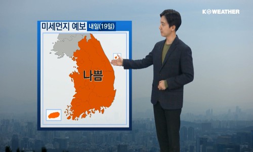 ³»ÀÏ(19ÀÏ‧ÀÏ)Àº Àü±¹ÀÌ ±¸¸§ ¸¹°Ú°í, °¿ø¿µµ¿À» Á¦¿ÜÇÑ ÁߺÎÁö¹æ¿¡´Â ³· ÇѶ§ ´«À̳ª ºñ°¡ ¿À°Ú´Ù. ³»¸®´Â ´«°ú ºñÀÇ ¾çÀº ¸¹Áö ¾Ê°Ú´Ù. ÇÑÆí ³»ÀÏ(19ÀÏ‧ÀÏ)µµ Àü±¹ÀÌ Æò³âÀ» ¿ôµµ´Â ±â¿Â º¸À̸ç Å« ÃßÀ§´Â ¾ø°Ú´Ù. ¹Î°£±â»ó±â¾÷ ÄÉÀÌ¿þ´õ´Â ¡°³»ÀÏ(19ÀÏ‧ÀÏ) ¿ì¸®³ª¶ó´Â Áß±¹ »óÇØ ºÎ±Ù¿¡ À§Ä¡ÇÑ °í±â¾ÐÀÇ °¡ÀåÀÚ¸®¿¡ µé°ÚÀ¸³ª, ÁߺÎÁö¹æÀº ºÏÂÊÀ» Áö³ª´Â ±â¾Ð°ñÀÇ ¿µÇâÀ» ¹Þ°Ú´Ù¡±¸ç ¡°³²ÇØ ÀϺΠÁö¿ªÀº ´ë±â°¡ ¸Å¿ì °ÇÁ¶ÇÏ´Ï °¢Á¾ ÈÀç ¿¹¹æ¿¡ À¯ÀÇÇØ¾ßÇÑ´Ù¡±°í ÀüÇß´Ù. ÄÉÀÌ¿þ´õ ¿¹º¸°ü°èÀÚ´Â ¡°³»ÀÏ(19ÀÏ‧ÀÏ)Àº Àü±¹ÀûÀ¸·Î ¹Ì¼¼¸ÕÁö ³óµµ°¡ ¡®³ª»Ý¡¯ ¼öÁØ ±îÁö Ä¡¼Ú°Ú´Ù¡±¸ç ¡°µÇµµ·Ï ½Ç¿ÜȰµ¿À» ÀÚÁ¦ÇÏ´Â ÇÑÆí ¿ÜÃ⠽à ¹Ì¼¼¸ÕÁö¿ë ¸¶½ºÅ©¸¦ ¹Ýµå½Ã Âø¿ëÇØ¾ß ÇÑ´Ù¡±°í ´çºÎÇß´Ù. * (ÃÊ)¹Ì¼¼¸ÕÁö ¿¹º¸ - ȯ°æºÎ ±âÁØ : Àü±¹ ¡®³ª»Ý¡¯ - WHO ±âÁØ : Áß¼ºÎ, °¿ø¿µ¼, ÀüºÏ, ´ë±¸ °æºÏ ¡®¸Å¿ì ³ª»Ý¡¯ / ±× ¹ÛÀÇ Àü±¹ ¡®³ª»Ý¡¯ ¾ÆÄ§ ÃÖÀú±â¿Â -5~2¡É, ³· ÃÖ°í±â¿Â 3~10¡É°¡ µÇ°Ú´Ù. ´ÙÀ½ ÁÖ ¼ö¿äÀÏ(22ÀÏ)ºÎÅÍ ±â¿ÂÀÌ ´õ ¿Ã¶ó ¸ñ¿äÀÏ(23ÀÏ)¿¡´Â ¼¿ïÀÇ ¾ÆÄ§ ÃÖÀú±â¿ÂÀÌ 0µµ±îÁö ¿À¸£°Ú°í, °°Àº ±â°£ ÃæÃ»À̳² Áö¿ª¿¡´Â ºñ°¡ ³»¸®°Ú´Ù.