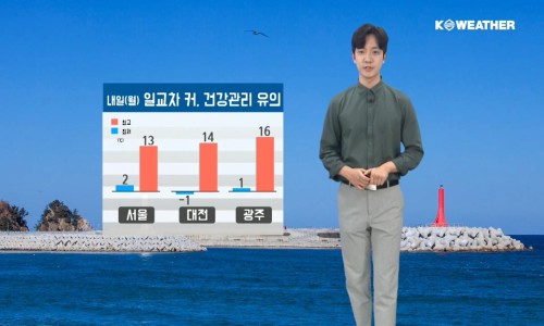 ³»ÀÏ(24ÀÏ‧¿ù) Àü±¹ÀÌ ´ëü·Î ±¸¸§ ¸¹Àº °¡¿îµ¥ ¹ãºÎÅÍ Èå·ÁÁö°Ú°í, ÃæÃ»µµ¿Í Àü¶óµµ´Â ¹ãºÎÅÍ ºñ°¡ ¿À°Ú´Ù. ºñ´Â ¸ð·¹(25ÀÏ‧È) Àü±¹ÀûÀ¸·Î È®´ëµÇ°Ú´Ù. ÇÑÆí ³»ÀÏ(24ÀÏ‧¿ù)Àº Àü±¹ÀÌ ¾ÆÄ§°ú ³·ÀÇ ±â¿Â Â÷°¡ Å©°ÚÀ¸´Ï °Ç°°ü¸®¿¡ À¯ÀÇÇØ¾ß°Ú´Ù. ³· µ¿¾È Àü±¹ÀÌ 10¡É ÀÌ»óÀÇ ±â¿Â º¸ÀÌ¸ç Æ÷±ÙÇϰڴÙ. ¹Î°£±â»ó±â¾÷ ÄÉÀÌ¿þ´õ´Â ¡°³»ÀÏ(24ÀÏ‧¿ù) ¿ì¸®³ª¶ó´Â ³²ÇØ»óÀ» Áö³ª´Â °í±â¾ÐÀÇ ¿µÇâÀ» ¹Þ´Ù°¡ ¼ÂÊ¿¡¼ ´Ù°¡¿À´Â ±â¾Ð°ñÀÇ ¿µÇâÀ» ¹Þ°Ú´Ù¡±¸ç ¡°µ¿ÇؾȰú ´ë±¸, °æºÏ ÀϺΠ³»·úÀº ´ë±â°¡ ¸Å¿ì °ÇÁ¶Çϰڴ١±°í ÀüÇß´Ù. ÄÉÀÌ¿þ´õ ¿¹º¸°ü°èÀÚ´Â ¡°³»ÀÏ(24ÀÏ‧¿ù)Àº °¿ø¿µµ¿À» Á¦¿ÜÇÑ ÁߺÎÁö¹æÀÇ Ãʹ̼¼¸ÕÁö ³óµµ°¡ ¡®³ª»Ý¡¯ ¼öÁرîÁö ¿À¸£°Ú´Ù¡±¸ç ¡°È£Èí±â °ü¸®¿¡ °¢º°ÇÑ ÁÖÀǰ¡ ÇÊ¿äÇÏ´Ù¡±°í ´çºÎÇß´Ù. * (ÃÊ)¹Ì¼¼¸ÕÁö ¿¹º¸ - WHO ±Ç°í±âÁØ : ÁߺÎÁö¹æ(¿µµ¿Á¦¿Ü) ¡®³ª»Ý¡¯ / ±× ¹ÛÀÇ Àü±¹ ¡®º¸Å롯 - ȯ°æºÎ ±âÁØ : Àü±¹ ¡®º¸Å롯 ¾ÆÄ§ ÃÖÀú±â¿Â -5~5¡É, ³· ÃÖ°í±â¿Â 10~17¡É ¿¡ ¸Ó¹°°Ú´Ù. ´ÙÀ½ ÁÖ Àü±¹ÀÌ ´ëü·Î Å« ÃßÀ§ ¾øÀÌ ¿ÂÈÇϰڴÙ. ¸ð·¹(25ÀÏ‧È)´Â Àü±¹¿¡ ºñ°¡ ¿À°Ú°í, °¿ø»ê°£Àº ´«ÀÌ ¿À°Ú´Ù. µ¿ÇØ¾È Áö¿ªÀº ÀÌÈÄ¿¡µµ ºñ°¡ °è¼ÓµÉ Àü¸ÁÀÌ´Ù.