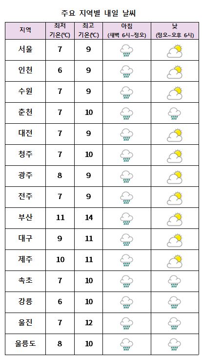 ¾ÆÄ§ ÃÖÀú±â¿ÂÀº 6¡É¿¡¼ 11¡É, ³· ÃÖ°í±â¿ÂÀº 9¡É¿¡¼ 14¡É·Î Æò³âº¸´Ù 1~8¡É ³ôÀº ºÐÆ÷¸¦ º¸À̰ڴÙ.