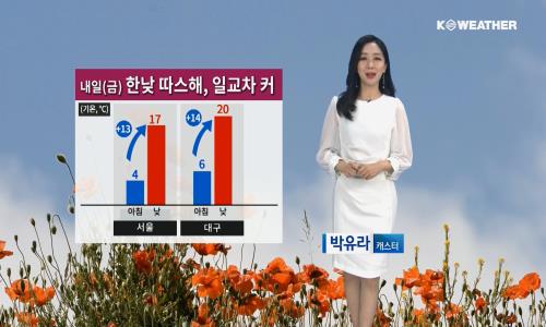 ±Ý¿äÀÏÀÎ ³»ÀÏ(3ÀÏ¡¤±Ý)µµ ¸¼Àº °¡¿îµ¥ Àϱ³Â÷°¡ Å©°Ô ¹ú¾îÁö°Ú´Ù. ÇÑÆí, ´ë±â°¡ °ÇÁ¶ÇÑ °¡¿îµ¥ ¹Ì¼¼¸ÕÁö ³óµµ±îÁö ³ôÀ» °ÍÀ¸·Î º¸¿© °Ç°¿¡ ÁÖÀǰ¡ ÇÊ¿äÇÏ´Ù. ¹Î°£±â»ó±â¾÷ ÄÉÀÌ¿þ´õ¿¡ µû¸£¸é ³»ÀÏ(3ÀÏ¡¤±Ý)Àº Áß±¹ »êµÕ¹Ýµµ¿¡ À§Ä¡ÇÑ °í±â¾ÐÀÇ ¿µÇâÀ» ¹Þ°Ú´Ù. ÁߺÎÁö¹æÀº ´ëü·Î ¸¼°Ú°í, ³²ºÎÁö¹æÀº ±¸¸§ ¸¹´Ù°¡ Á¡Â÷ ¸¼¾ÆÁö°Ú´Ù. ¾ÆÄ§ ÃÖÀú±â¿ÂÀº -1~9¡É, ³· ÃÖ°í±â¿ÂÀº 13~20¡É·Î ¾ÆÄ§, Àú³á¿¡´Â ½Ò½ÒÇÏÁö¸¸ ³·¿¡´Â ±â¿ÂÀÌ Å©°Ô ¿Ã¶ó µû½ºÇϰڴÙ. Àϱ³Â÷°¡ Å©°Ô ¹ú¾îÁö´Â ¸¸Å ¿ÊÂ÷¸²¿¡ À¯ÀÇÇØ¾ß°Ú´Ù. *(ÃÊ)¹Ì¼¼¸ÕÁö ¿¹º¸ - WHO ±âÁØ : ¼ÂÊÁö¹æ '³ª»Ý'/ µ¿ÂÊÁö¹æ ¿ÀÀü 'º¸Åë', ¿ÀÈÄ '³ª»Ý' - ȯ°æºÎ ±âÁØ : ¼ÂÊÁö¹æ '³ª»Ý'/ µ¿ÂÊÁö¹æ ¿ÀÀü 'º¸Åë', ¿ÀÈÄ 'ÇѶ§ ³ª»Ý' ÇÑÆí, °¥¼ö·Ï °ø±â°¡ ¸Þ¸»¶ó°¡°í ÀÖ´Ù. ÇöÀç Áß¼ºÎ¿Í ÀϺΠ°æºÏ, Àü³²À¸·Î °ÇÁ¶Æ¯º¸°¡ ¹ßÈ¿ ÁßÀ̰í, ƯÈ÷ ¼¿ï°ú ÀϺΠ°æ±âµµ´Â °ÇÁ¶°æº¸·Î±îÁö Ưº¸°¡ °ÈµÆ´Ù. ¾ÕÀ¸·Î Ưº¸´Â ´õ È®´ëµÉ °ÍÀ¸·Î º¸¿© ÈÀç»ç°í¿¡ °¢º°È÷ ÁÖÀÇÇØ¾ß°Ú´Ù. Àü ÇØ»óÀÇ ¸Õ¹Ù´Ù¸¦ Áß½ÉÀ¸·Î ³»ÀÏ(3ÀÏ¡¤±Ý) ¿ÀÈĺÎÅÍ ¹Ù¶÷ÀÌ Â÷Â÷ °ÇØÁö°Ú°í, ¹°°áµµ ³ô°Ô ÀϰڴÙ. ÃÖ°í 2.5~3.5m·Î ¿¹»óµÈ´Ù. ´çºÐ°£ °¡²û ±¸¸§¸¸ Áö³ª´Â °¡¿îµ¥ µû½ºÇϰÚÁö¸¸ ÀÏ¿äÀÏ(5ÀÏ)Âë ¼¿ïÀÇ ¾ÆÄ§±â¿ÂÀÌ 2¡É±îÁö ¶³¾îÁö´Â µî ¹Ý¦ ÃßÀ§°¡ ã¾Æ¿Ã °ÍÀ¸·Î Àü¸ÁµÈ´Ù.