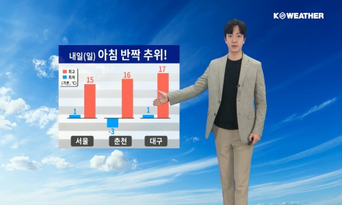 ½Ä¸ñÀÏÀÌÀÚ ¸íÀý ÇѽÄÀÎ ³»ÀÏ(5ÀÏ‧ÀÏ)¾ÆÄ§ Àü±¹¿¡ ¹Ý¦ ÃßÀ§°¡ ã¾Æ¿À°Ú´Ù. ƯÈ÷ °¿ø ÀϺÎÁö¿ª¿£ ÇÑÆÄÆ¯º¸µµ ³»·ÁÁú °ÍÀ¸·Î º¸¿© ÃßÀ§ ´ëºñ°¡ ÇÊ¿äÇϰڴÙ. ÇÏÁö¸¸ ³·¿¡´Â ±â¿ÂÀÌ Å©°Ô ¿Ã¶ó Æ÷±ÙÇÔÀ» µÇã°Ú´Ù.