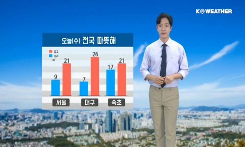 ¿À´Ã(29ÀÏ‧¼ö)Àº ¾îÁ¦(28ÀÏ‧È)º¸´Ù ±â¿ÂÀÌ ´õ ¿Ã¶ó µû¶æÇϰڴÙ. ´ëºÎºÐ Áö¿ªÀÌ Çѳ·¿¡ 20¡É ÀÌ»ó±îÁö ¿À¸£°Ú°í, ´ë±¸´Â 26¡É±îÁö ¿À¸¦ °ÍÀ¸·Î º¸ÀδÙ. ´Ù¸¸ Àϱ³Â÷°¡ Ä¿¼ ü¿ÂÁ¶Àý¿¡ À¯ÀÇÇØ¾ß°Ú´Ù.
