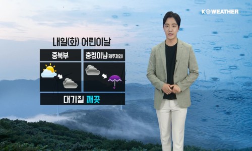 ¿À´Ã(4ÀÏ‧¿ù)Àº ¹ã¿¡ °¿ø¿µµ¿°ú °æºÏºÏºÎ µ¿Çؾȿ¡ ºñ°¡ ³»¸®°Ú´Ù. ¾î¸°À̳¯ÀÎ ³»ÀÏ(5ÀÏ‧È)Àº ÁߺϺÎÁö¹æÀº Á¾ÀÏ ±¸¸§ ¸¹°Å³ª È帮´Ù°¡ ³· ÇѶ§ ¼öµµ±ÇÀ» Áß½ÉÀ¸·Î ºø¹æ¿ïÀÌ ¶³¾îÁö°Ú°í, ÃæÃ»À̳² Áö¿ªÀº Á¡Â÷ Èå·ÁÁ® ¿ÀÈÄ¿¡ ºñ°¡ ¿À°Ú´Ù. ºñÀÇ ¾çÀº 5mm ¹Ì¸¸À¸·Î ¸¹Áö ¾Ê°Ú´Ù.