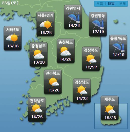 ¼¿ï, °æ±â´Â È帰 ÈÄ Á¡Â÷ °³°Ú°í, °¿øµµ´Â »õº®±îÁö ºñ°¡ ¿À´Ù°¡ Á¡Â÷ °¶ Àü¸ÁÀÌ´Ù. ÃæÃ»À̳²Áö¹æÀº ´ëü·Î ¸¼°Ú´Ù.