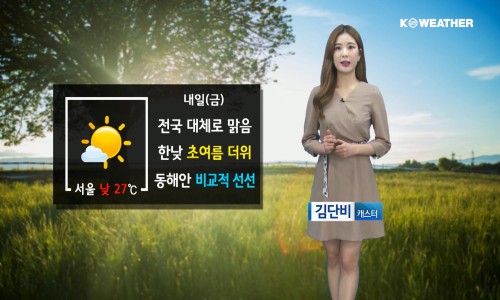 ³»ÀÏ(29‧±Ý)Àº Àü±¹ÀÌ ´ëü·Î ¸¼Àº °¡¿îµ¥, Çѳ·¿¡´Â ÃÊ¿©¸§ ´õÀ§¸¦ º¸ÀÌ¸ç ´þ°Ú´Ù. ¾ÆÄ§, Àú³áÀ¸·Î Àϱ³Â÷°¡ Å©°Ú°í, µ¿ÇؾÈÀº ºñ±³Àû ¼±¼±ÇϰڴÙ. ¶Ç ¿ÀÀü¿¡´Â ¼ÂÊÁö¹æÀ» Áß½ÉÀ¸·Î Ãʹ̼¼¸ÕÁö ³óµµ°¡ ³ô°Ú´Ù. ¹Î°£±â»ó±â¾÷ ÄÉÀÌ¿þ´õ¿¡ µû¸£¸é ³»ÀÏ(29ÀÏ‧±Ý)Àº ¼ÇØ»ó¿¡ À§Ä¡ÇÑ °í±â¾ÐÀÇ ¿µÇâÀ» ¹ÞÀ¸¸ç Àü±¹ÀÌ ´ëü·Î ¸¼°Ú´Ù. ¾ÆÄ§ ÃÖÀú±â¿ÂÀº 11~16¡É, ³· ÃÖ°í±â¿ÂÀº 21~ 29¡É·Î µ¿ÇؾÈÀ» Á¦¿ÜÇÑ Àü±¹¿¡¼ ÃÊ¿©¸§ ´õÀ§¸¦ º¸À̰ڴÙ. ¹Ì¼¼¸ÕÁö ³óµµ´Â ¼¿ï°æ±â¿Í ÃæÃ»µµ, ÀüºÏÀÌ ¿ÀÀü¿¡ ¡®³ª»Ý¡¯ ´Ü°è¸¦ º¸ÀÌ¸ç °ø±â°¡ ŹÇϰÚÁö¸¸, ¿ÀÈÄ¿¡´Â ¡®º¸Å롯 ¼öÁØÀ» ȸº¹ÇϰڴÙ. ¹Ù´ÙÀÇ ¹°°áÀº Àü ÇØ»ó¿¡¼ 1.5m ÀÌÇÏ·Î ºñ±³Àû ÀÜÀÜÇÏ°Ô ÀϰڴÙ. ´çºÐ°£ ±â¿ÂÀº ´õ ¿Ã¶ó¼ ´þ°Ú°í, ÁÖ¸»¿¡´Â Á¦ÁÖµµ¿¡ ºñ°¡ ³»¸± Àü¸ÁÀÌ´Ù. ±è´Üºñ ¿ÂÄÉÀÌ¿þ´õ ±â»óij½ºÅÍ sweet_rain131@naver.com