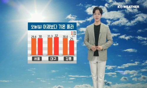 6¿ùÀÇ ¸¶Áö¸· ÁÖ¸»ÀÎ ¿À´Ã(28ÀÏ¡¤ÀÏ)µµ Àü±¹ÀÌ ¹«´þ°Ú´Ù. ¼¿ïÀÌ Çѳ·¿¡ 30¡É±îÁö ¿À¸£¸ç ¾îÁ¦(27ÀÏ¡¤Åä)º¸´Ù ±â¿ÂÀÌ ³ô°Ô ¿À¸£°Ú°í, ½Àµµµµ ³ô¾Æ ÈÄÅÓÁö±ÙÇϰڴÙ. ÇÑÆí µ¿Ç³ÀÇ ¿µÇâÀ» ¹Þ´Â °¿ø¿µµ¿Àº ¾îÁ¦(27ÀÏ¡¤Åä) ±â¿ÂÀÌ ³·°Ú´Ù.